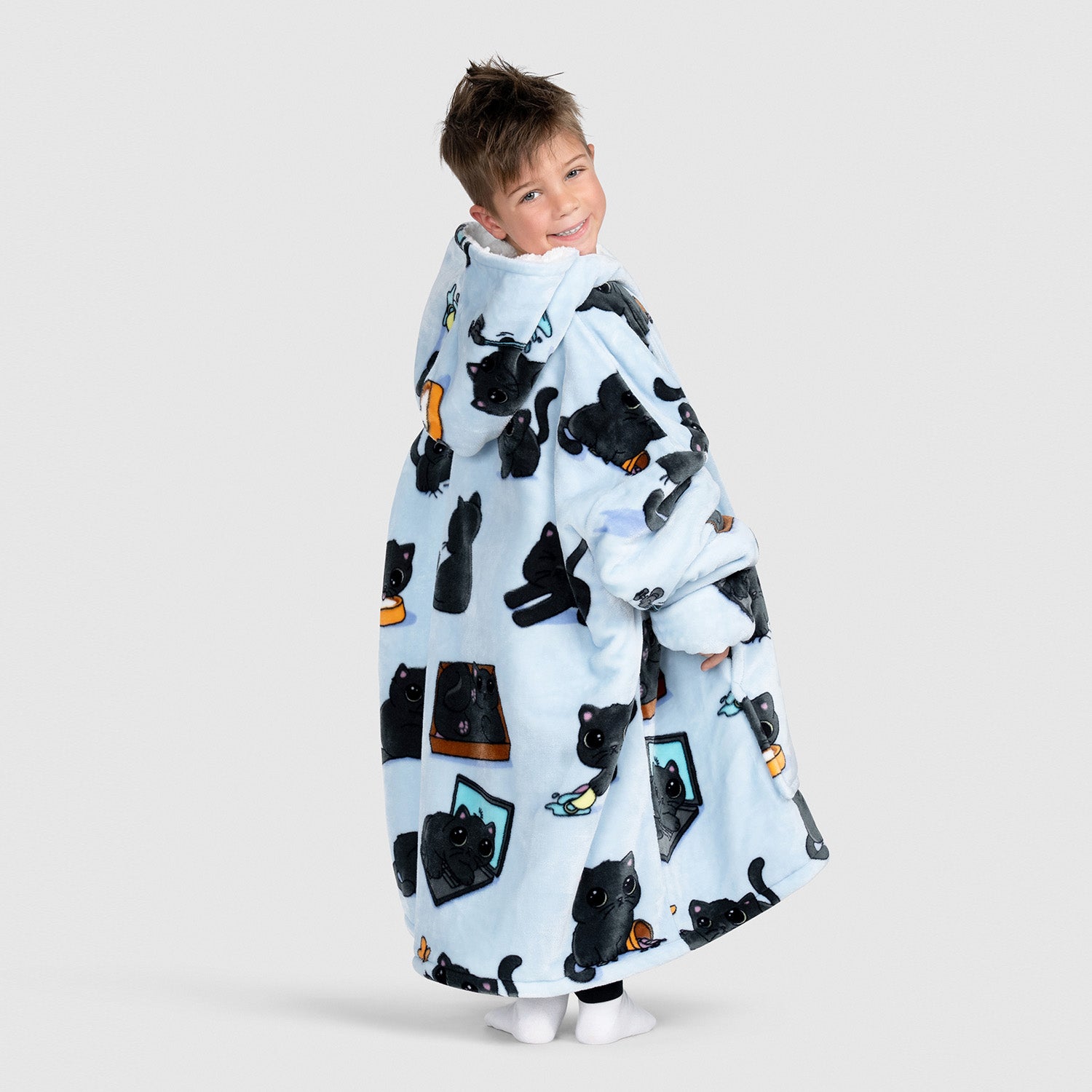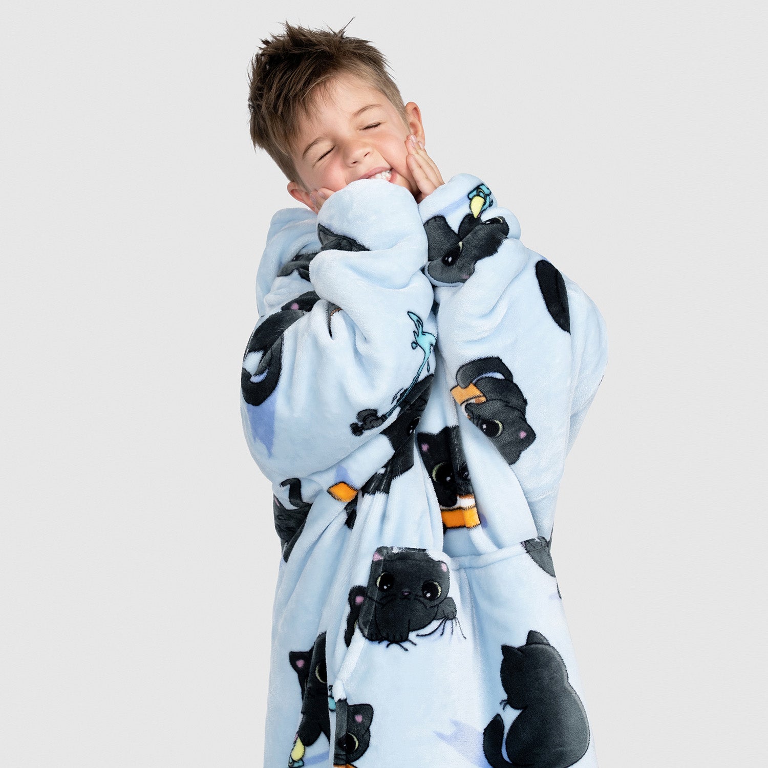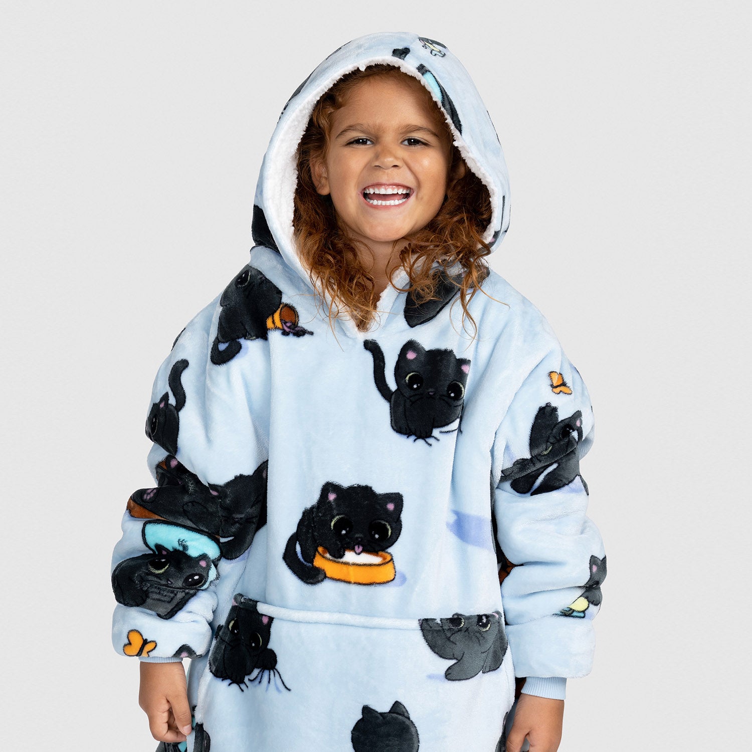 - If your little one is a cat-lover, they’ll love our Black Cat Kids Oodie. Made from our soft ToastyTek™ fabric, and the cutest print, purr-fect for lazy days on the couch.