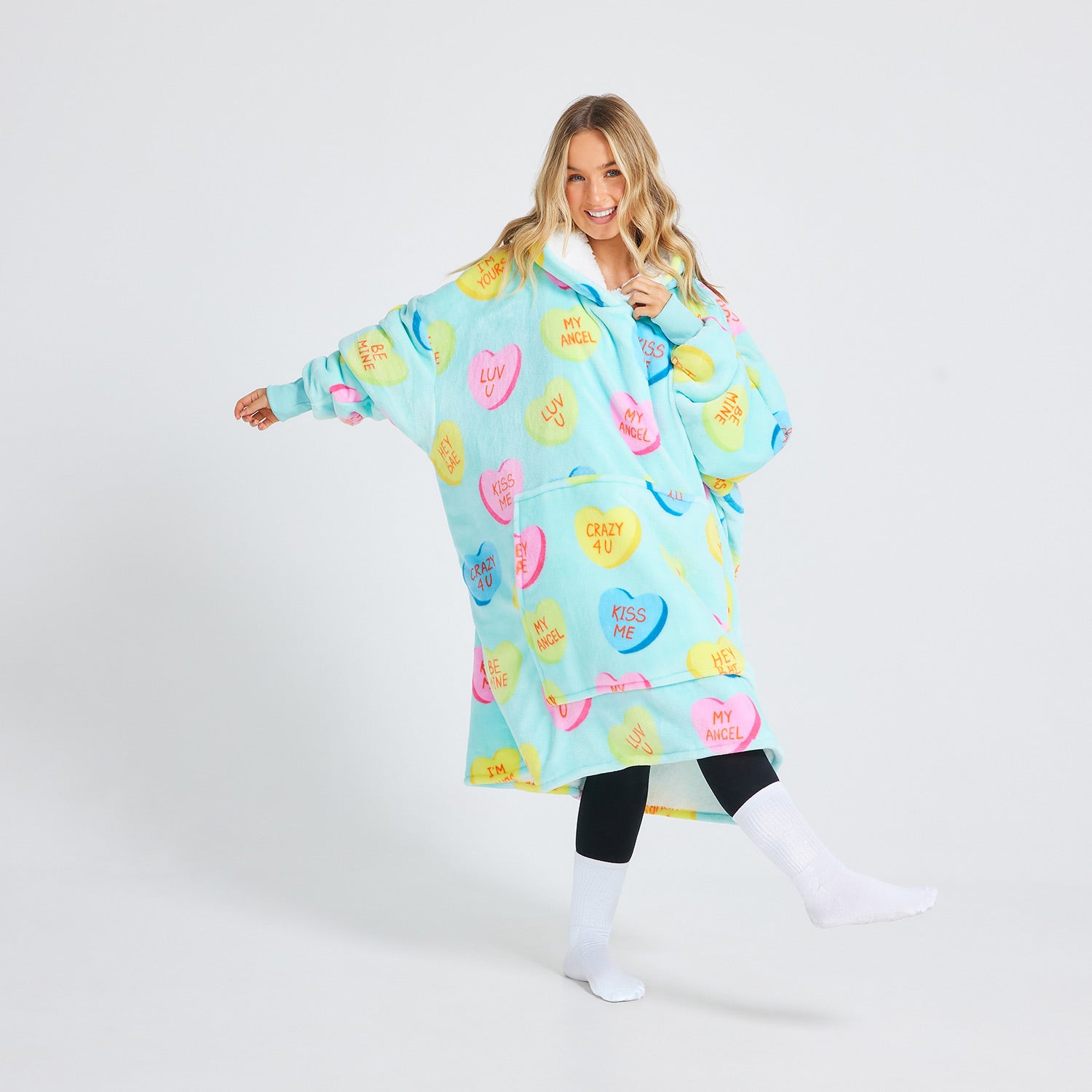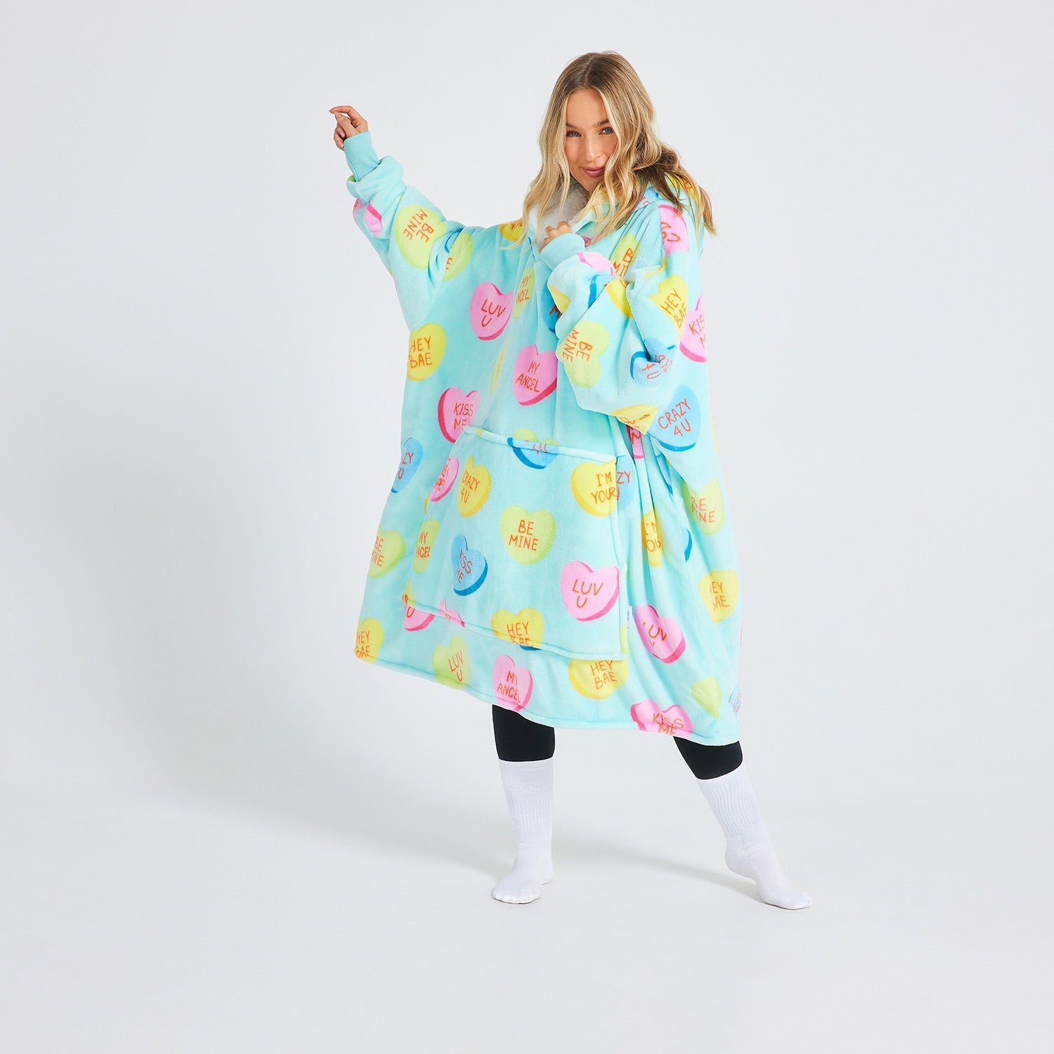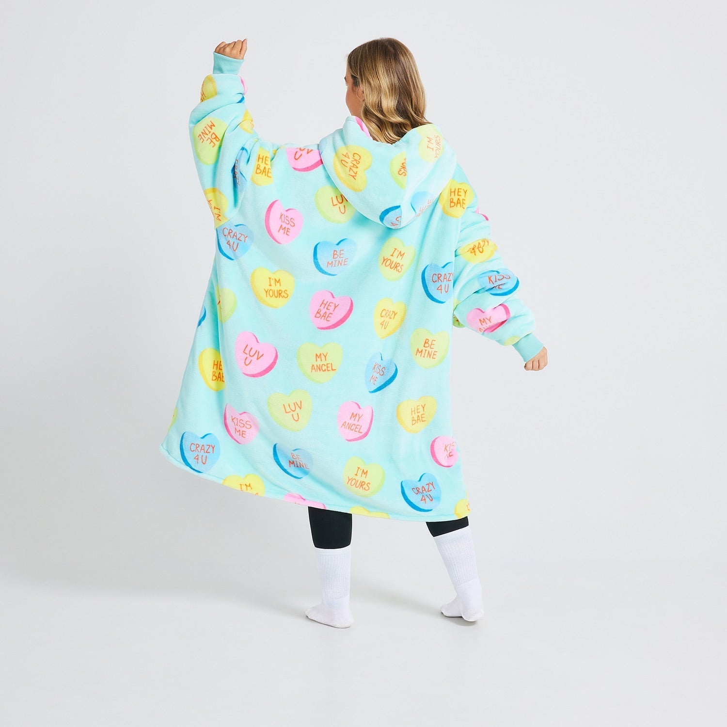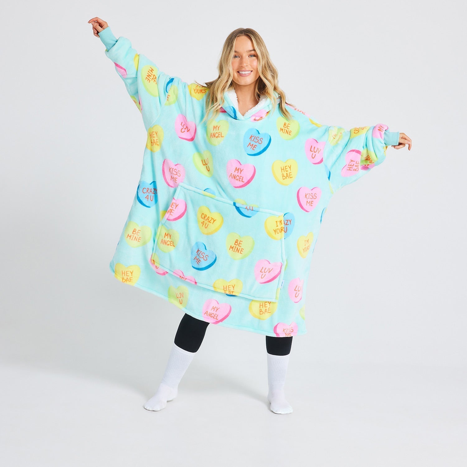 - Wear your heart on your sleeve (literally) with the Love Heart Candies Oodie! Covered in adorable heart-shaped candies with lovable messages like: Luv U, My Angel, I’m Yours & more.