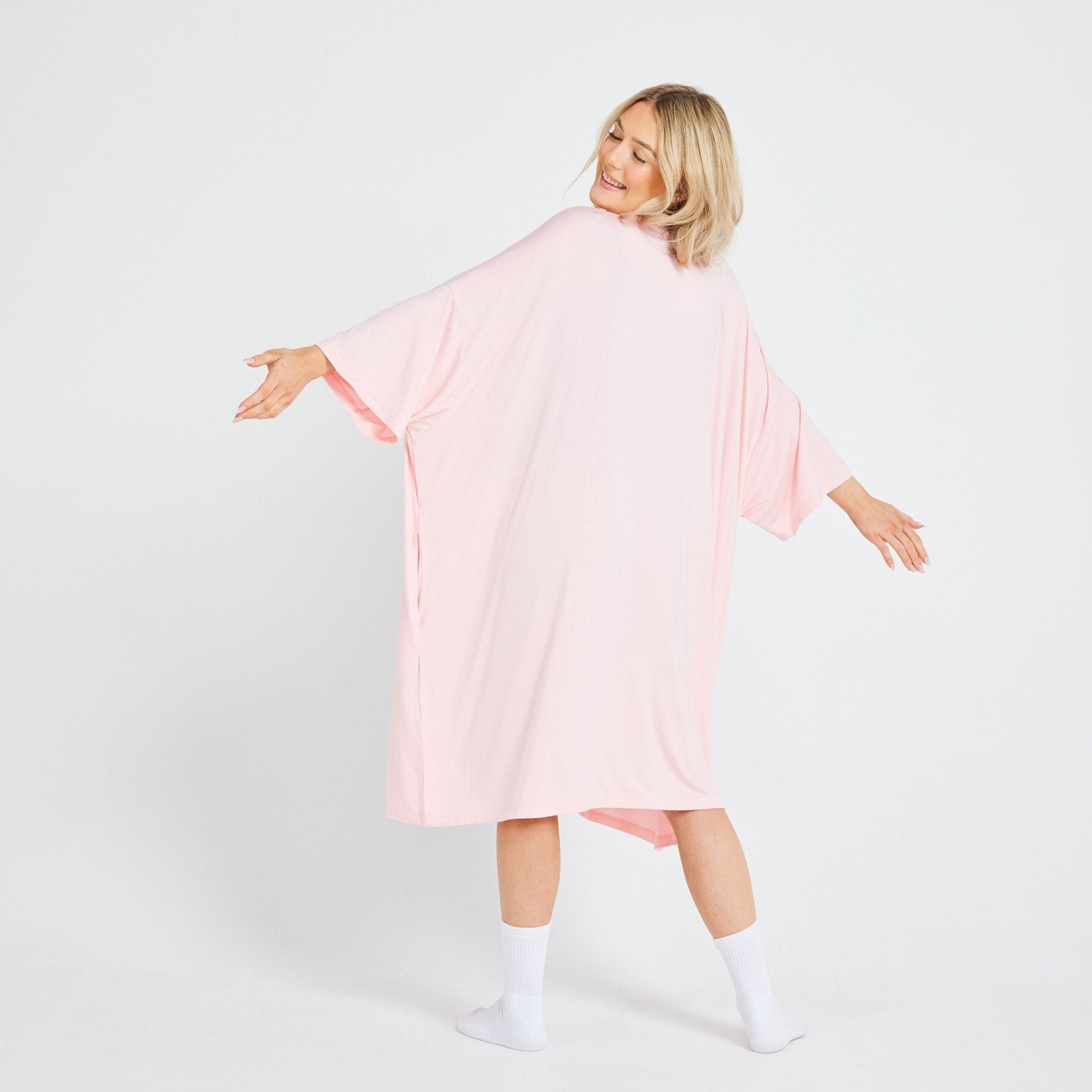 - One size fits most: Oodie Sleep Tees measure in at a generous and roomy 95cm long and 170cm wide (total circumference). We recommend hand washing your Sleep Tee.